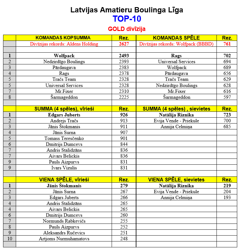 - Wolfpack – 761 (10.ABL) – Wolfpack v Ten Pin | www.VissParBoulingu.lv;