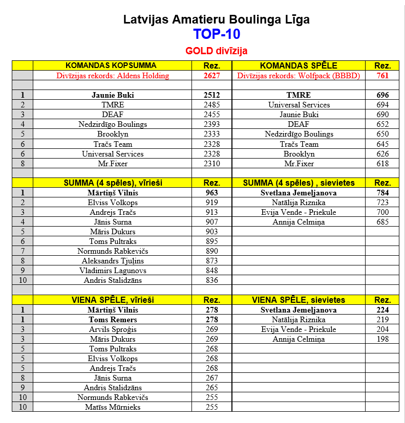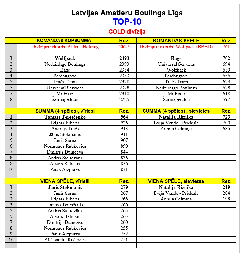 | 22 | Rags | Dāvis Šipkēvičs | 194,33 | 160,13 | 185,78 | 182,04 | 32 | 363 | 240 | 192 | 0 | 279 | 807 | 654 | 0 | 895 |