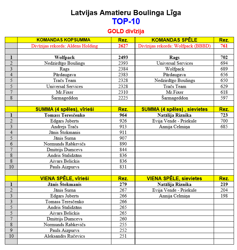 1) Ten Pin – 2596 (10.ABL 1.kārta).
