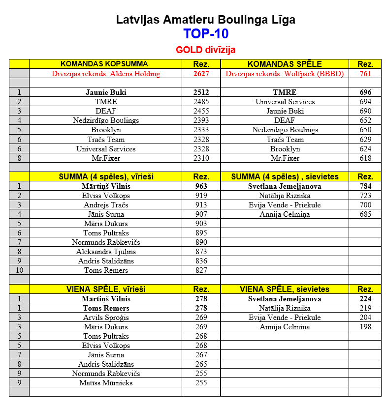- TMRE – 717 (18.ABL 4.k.) – 25.03.2024; /iepriekšējais rekords “705” (9.ABL 1.k.) – RR Dziednieks v TMRE Revolution (TK 12, Atriebības Blice) | www.VissParBoulingu.lv;/